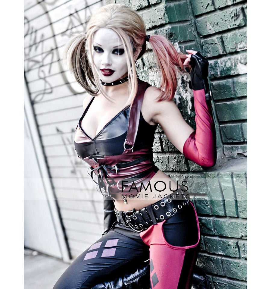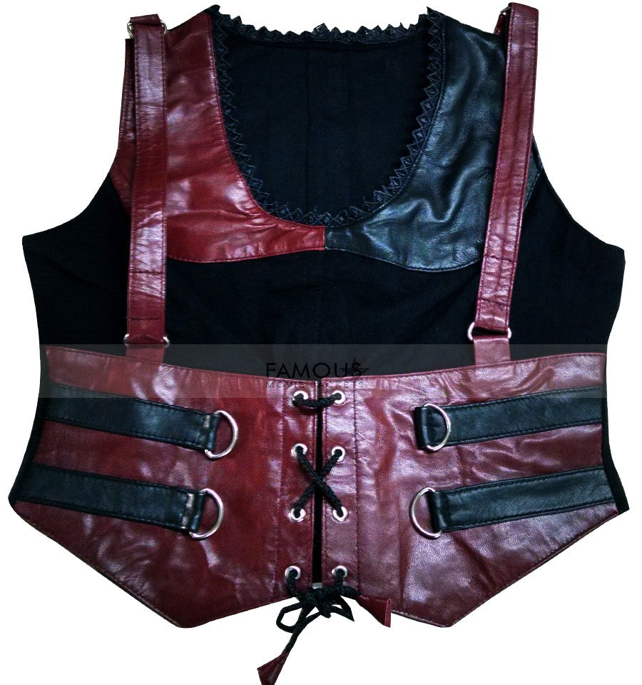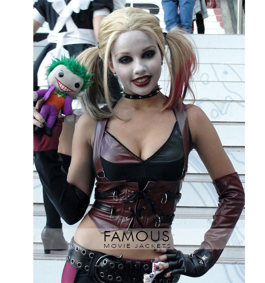 Harley Quinn is one of the famous character when it comes to costuming. We are back with another stylish outfit taken by Batman Arkham City which is the costume of crazy but most stylish Harley Quinn. We offer you best quality replica as this cropped vest is designed in the same manner as you can your favorite Harley Quinn wearing. It is made of 100% pure cowhide leather externally and internal material is made of viscose. It has simple round neck and front is beautifully designed with lace closure. This is something which will surely add an extremely glam looks to your persona in normal daily styling. Shop Batman Arkham City Harley Quinn Costume Vest and have a refined look.