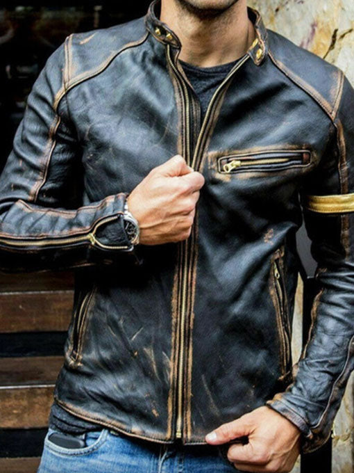 Men Vintage Cafe Racer Motorcycle Distressed Leather Jacket