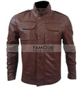 Men Belted Neck Zipper Style Brown Leather Jacket