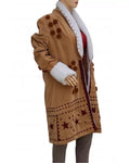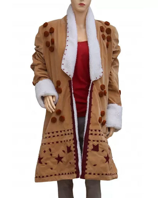 Fine suede leather has been used to create the Vignette Stonemoss Coat. There is faux shearling lining inside. It is soft, cozy, and distinctive. The open-front design is attractive and unique. At the front collar, fur is used as the lining. The long sleeves on Cara Delevingne's Carnival Row Coat have wide fur cuffs. Your green coat will make you stand out in a crowd.