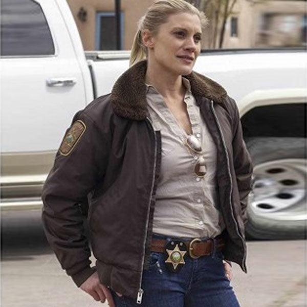 Sheriff Victoria Moretti Longmire Fur Collar Bomber Jacket