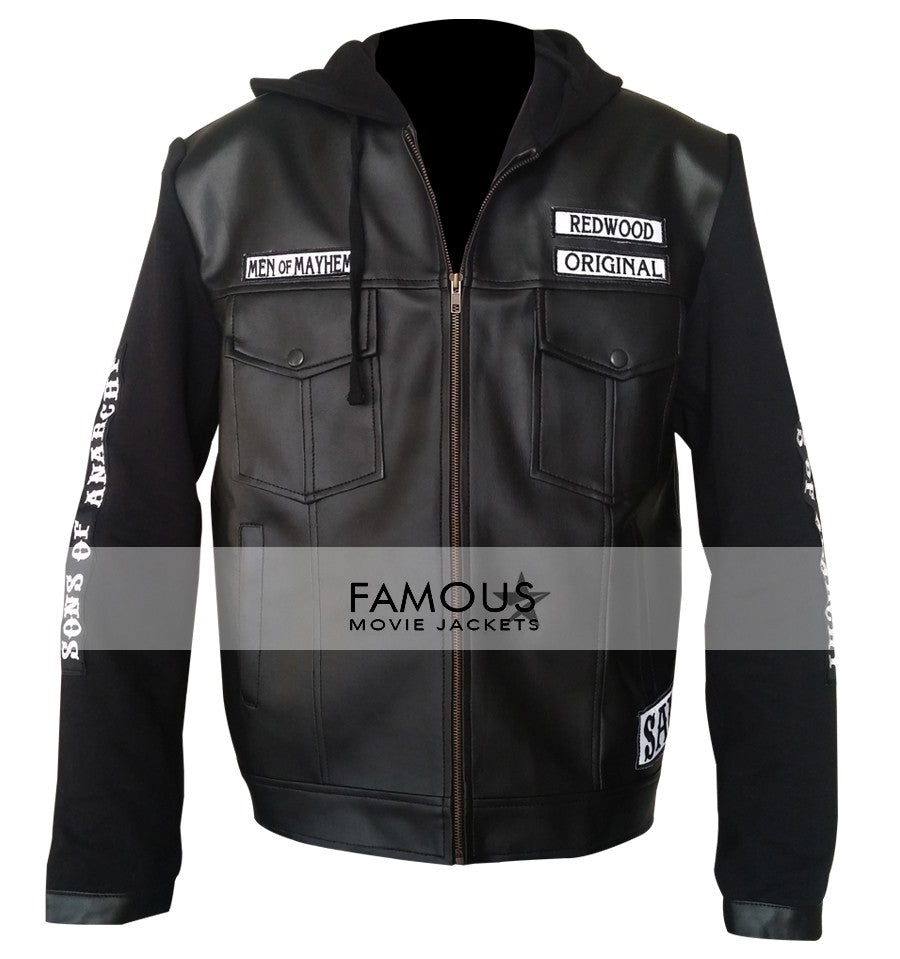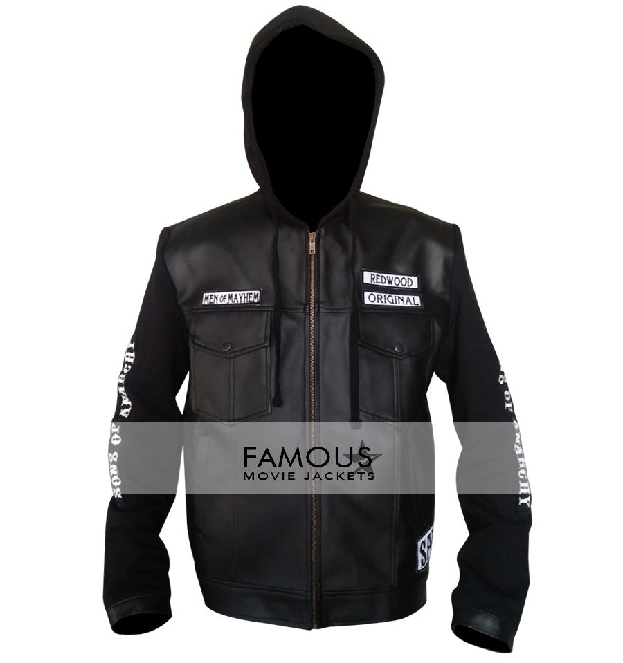 Are you the one who loves to ride bikes and like to wear funky style biker jackets with skulls logo then yes We famous movie jackets welcome you here because its the right place to get what your desires. We provide jackets of every style adapted by celebrities of Holly wood and we gives the chance to a normal person to get one like those clothes. We give you an ultimately best offer. This black hoody jacket was worn in Son of Archy and its of rare leather.