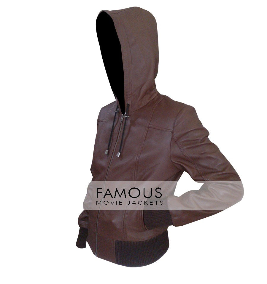 Ladies hold up your heart because the true glamour is here with distinctive style at its peak from famous movie jacket. Demanding your needs and awakening the top new style with top new way of presenting fashion.The part of your personality can be truly defined by your dressing and surely judged by it too but the never lasting effect can only come once in a blue moon which famous movie jackets proudly presents you Women Light Brown Bomber Leather Jacket the most awesome of all and surely can be call off the master piece of today's in thing.The jacket is filled with sterling qualities and inspiring power comprises of light brown color purely leather made and hoodie style on its back with YKK zipper in front for closure and short fitted style.Best to wear in winters.Get it now before its too late.